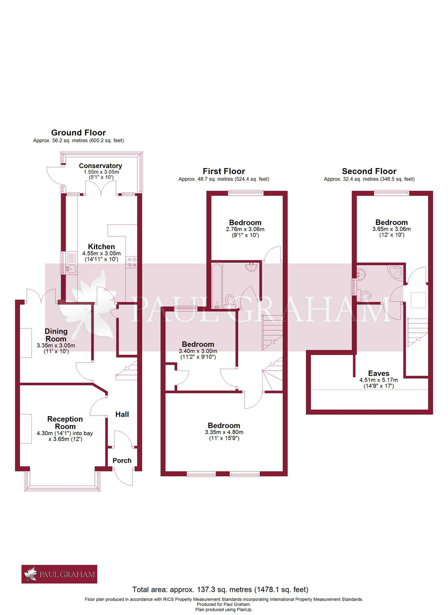 BEDROOM 3 10' x 9' 1" (3.05m x 2.77m)