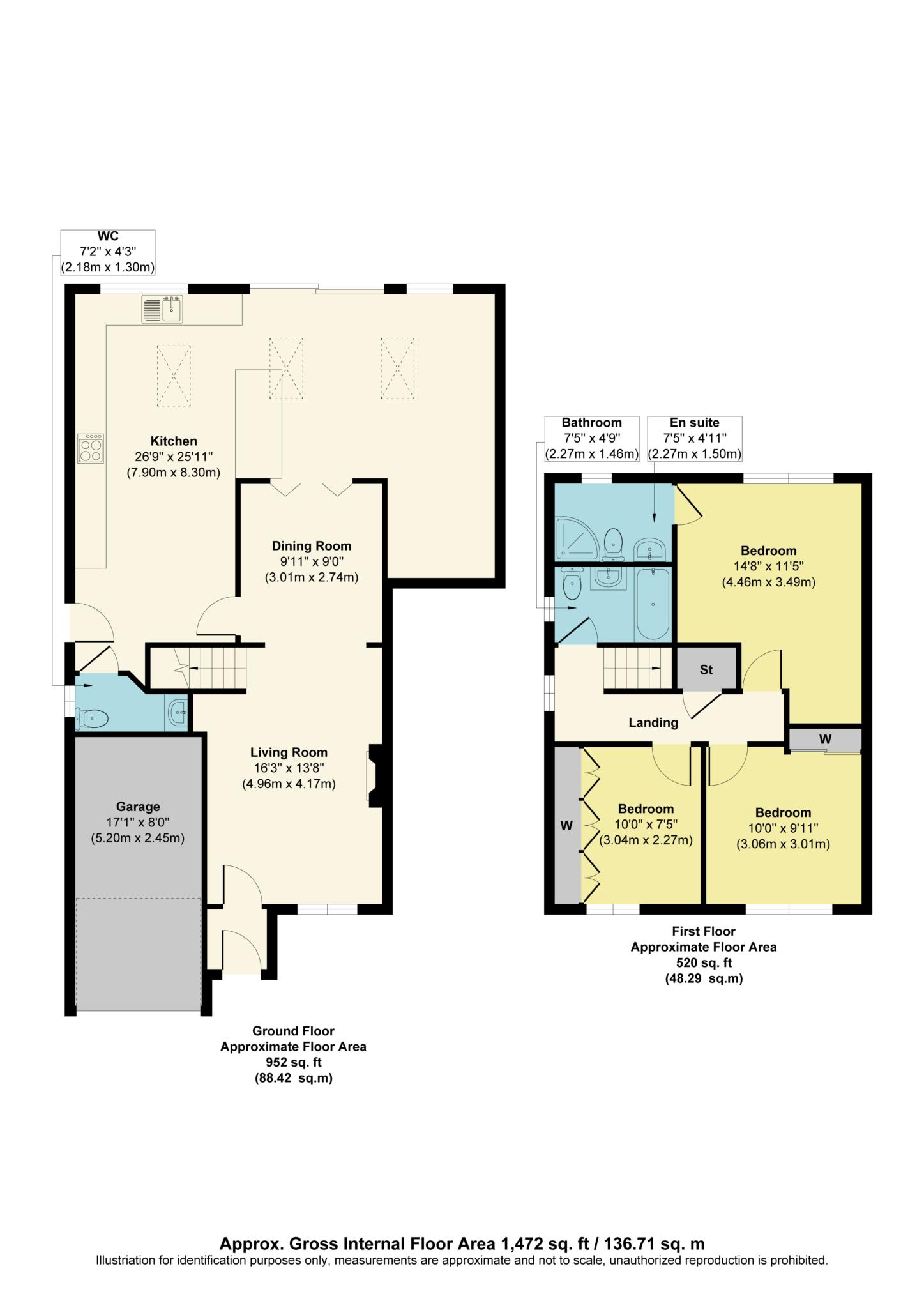 To the first floor, the property continues to impress with well proportioned bedrooms and excellent built in storage throughout. The master bedroom is a great size and benefits from fitted wardrobes and a modern en-suite shower room, complete with a double shower. There is a further double bedroom and a good-sized third bedroom, both also featuring fitted wardrobes, ensuring practical storage for the whole household. The accommodation is completed by a fully tiled three piece family bathroom, finished in a modern style and ideal for both family use and guests.