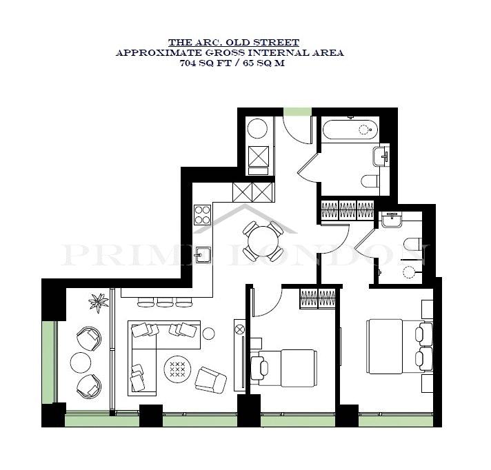 This East facing two bedroom apartment, well positioned in The Arc and set above the roof line of the surrounding buildings, benefitting from views of the surrounding area, is available for chain free sale though Prime London.