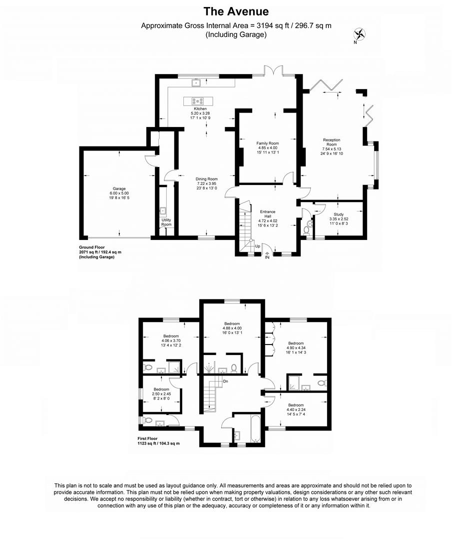 A large separate utility room with internal access to the garage, a guest cloakroom, and a ground-floor study with bespoke fitted units, complete the extensive lower-level accommodation.