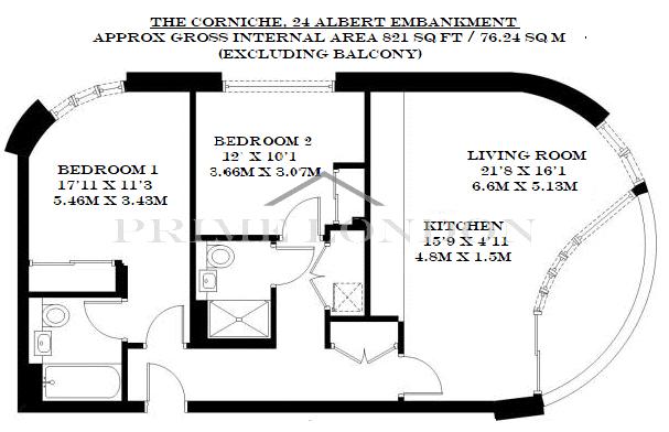 A bright and modern south facing 821 sq ft two bedroom apartment with balcony, available for sale through Prime London in The Corniche, 24 Albert Embankment. The apartment is available chain free. Located in an enviable position on the bank of the River Thames, The Corniche (designed by Foster & Partners) captures some of London's most exquisite views, not only of the Houses of Parliament and the River Thames, but also the Tate Britain, London Eye and the City. The development includes extensive residents' facilities including a 24 hour concierge service, lounge and bar, gym, spa, pool, cinema, ten pin bowling, games room, also commercial spaces focused around a well considered and inviting public space.