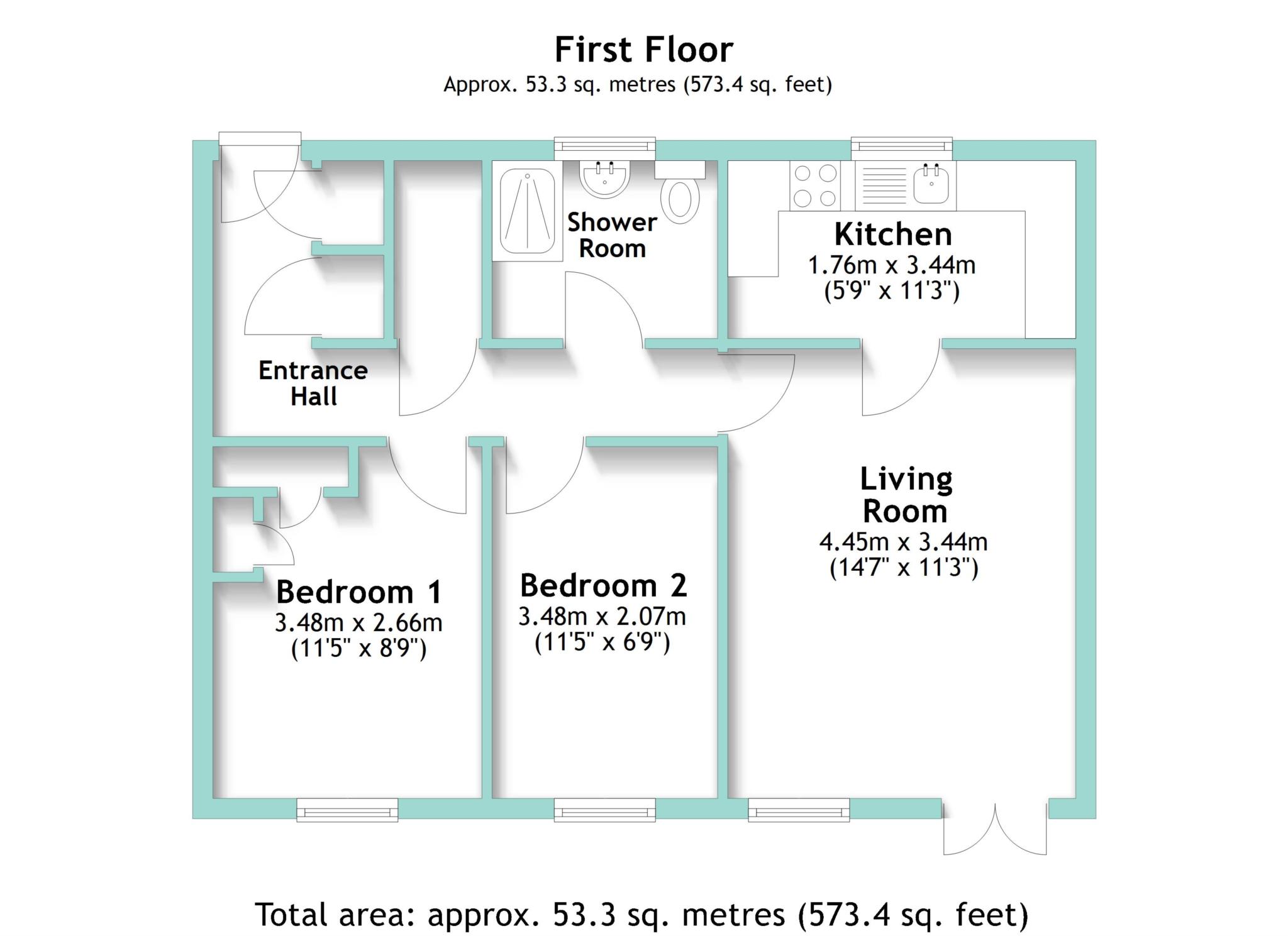Bedroom one is a generous double, complete with a full range of modern fitted wardrobes and overhead storage. Bedroom two is currently arranged as a dining room, but it`s a flexible space that could easily serve as a guest bedroom, study, or hobby room. The refitted shower room is sleek and modern, with a walk-in shower, WC, and stylish vanity unit.