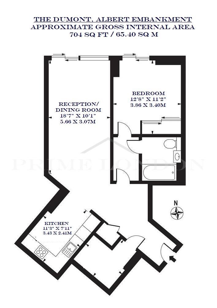 This elegantly finished,large one bedroom apartment of 704 sq ft / 65.4 sq m, with direct views of the River Thames and Houses of Parliament, is available for chain free sale within The Dumont through Prime London.