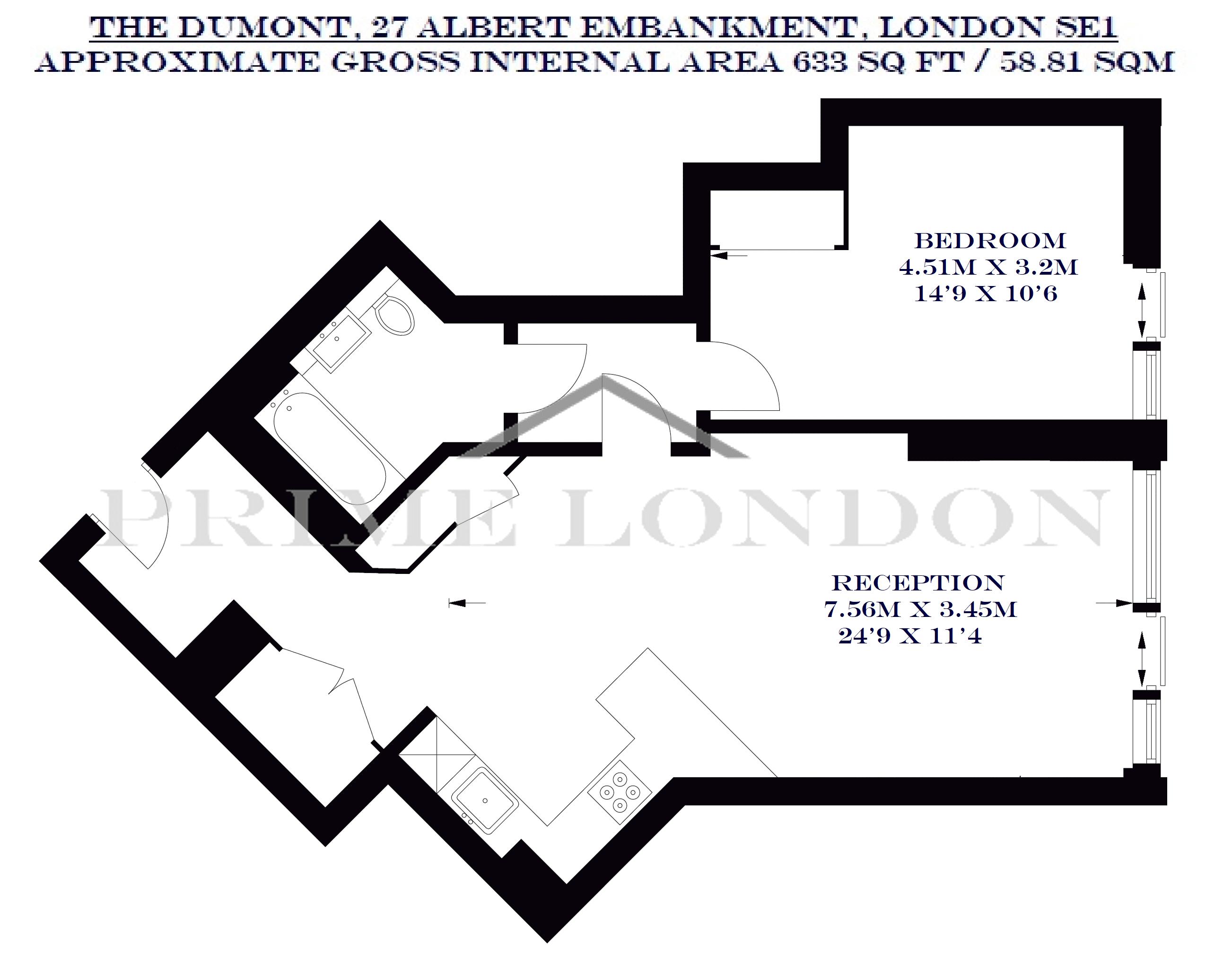 A brand new one bedroom apartment of 633 sq ft, directly facing onto the river, is available for lease within the exquisite new development The Dumont, exclusively through Prime London.
