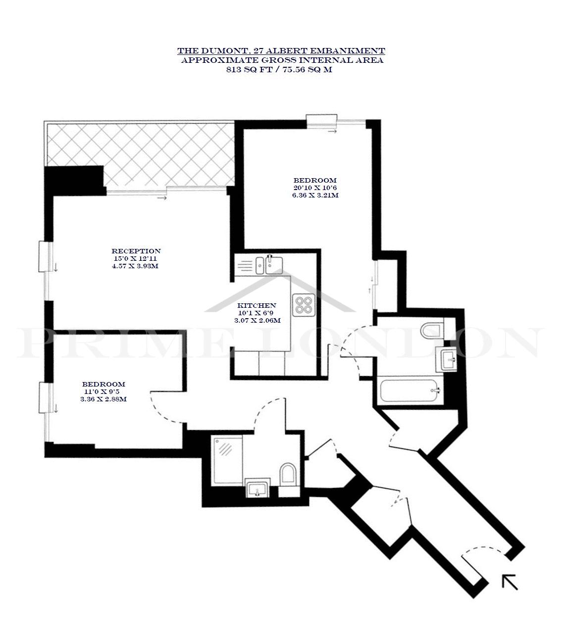 This beautifully presented and elegantly finished two bedroom apartment of 813 sq ft / 75.56 sq m, with direct views of the River Thames, is available for chain free sale within The Dumont through Prime London.