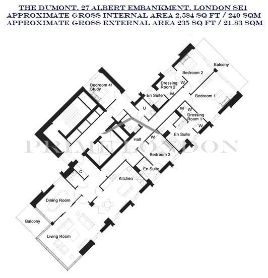 An elite four bedroom apartment, totalling over 2,500 sq ft, encompassing the entire floor and with 360 degree views, available within The Dumont through Prime London.