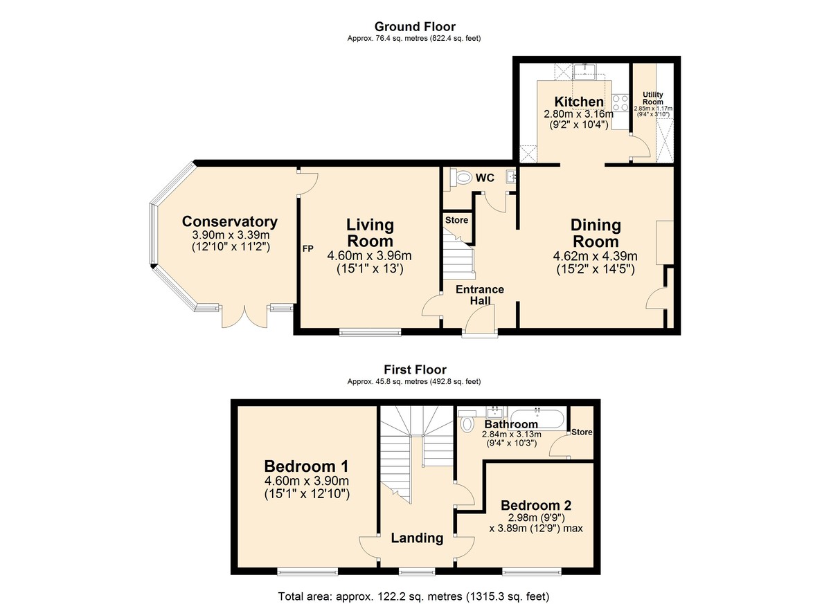 Upstairs, the cottage offers two excellent double bedrooms. Bedroom 1 spans the full width of the cottage and enjoys garden views, while Bedroom 2 also offers ample space and natural light. A modern family bathroom with shower over bath, along with an additional upstairs storage cupboard, completes the layout.