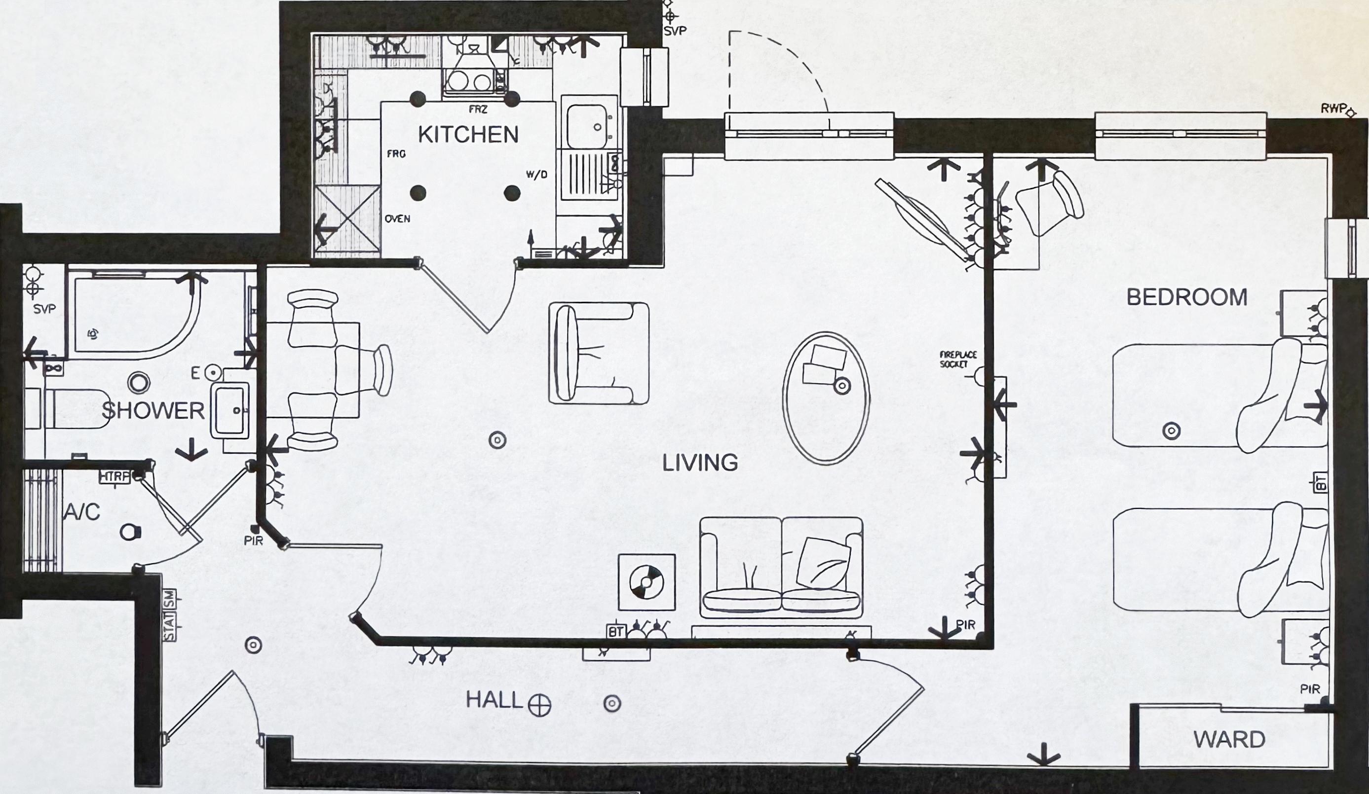 The property's generously sized double bedroom features fitted wardrobes, creating a functional, clutter-free retreat for restful nights. A modern, beautifully appointed shower room complements the bedroom perfectly, thoughtful in design and finish.