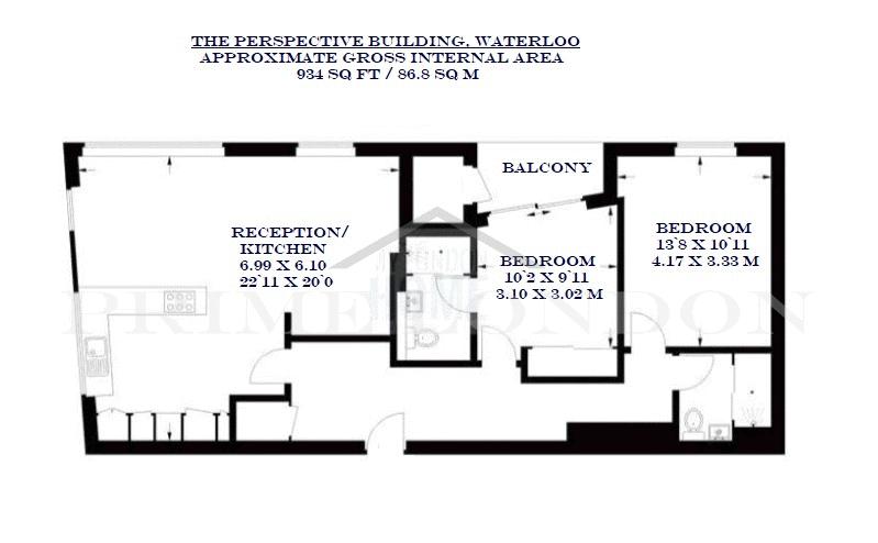 A bright and refurbished two bedroom two bathroom apartment of 934 sq ft/ 86.8 sqm, with views of The City and Shard, available to rent through Prime London.
