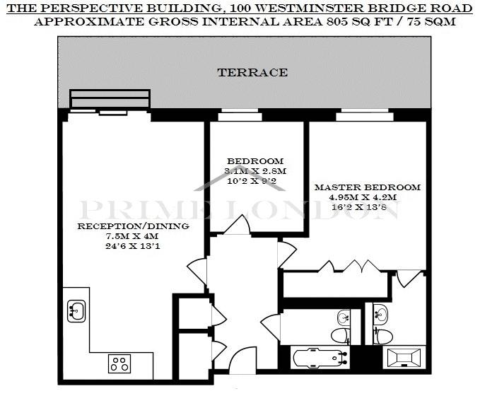 An extremely generous apartment of over 800 sq ft, with large private terrace and secure parking space, available for sale in The Perspective Building exclusively through Prime London.