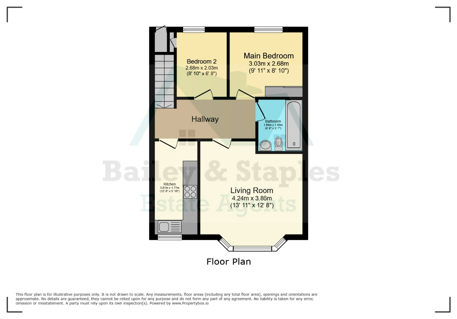 Bedroom 2 w: 2.03m x l: 2.68m (w: 6' 8" x l: 8' 10")