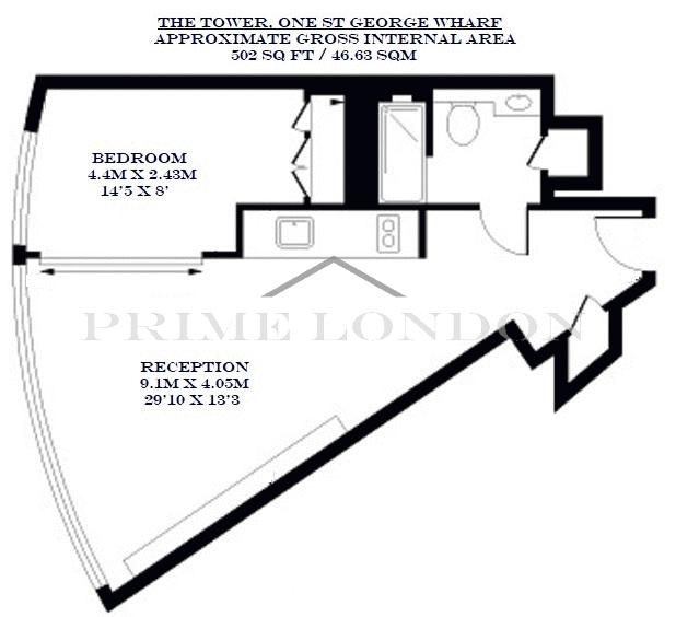 This exceptional unfurnished one bedroom apartment of approximately 500 sq. ft / 46 sq m in the ultra high-specification One St. George Wharf, and available now through Prime London.
