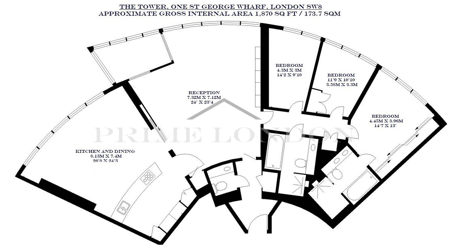 An elite apartment within The Tower, with an exceptional panorama of London and extensive lateral space totalling 1,870 sq ft (173.73 sqm), available for sale through Prime London.