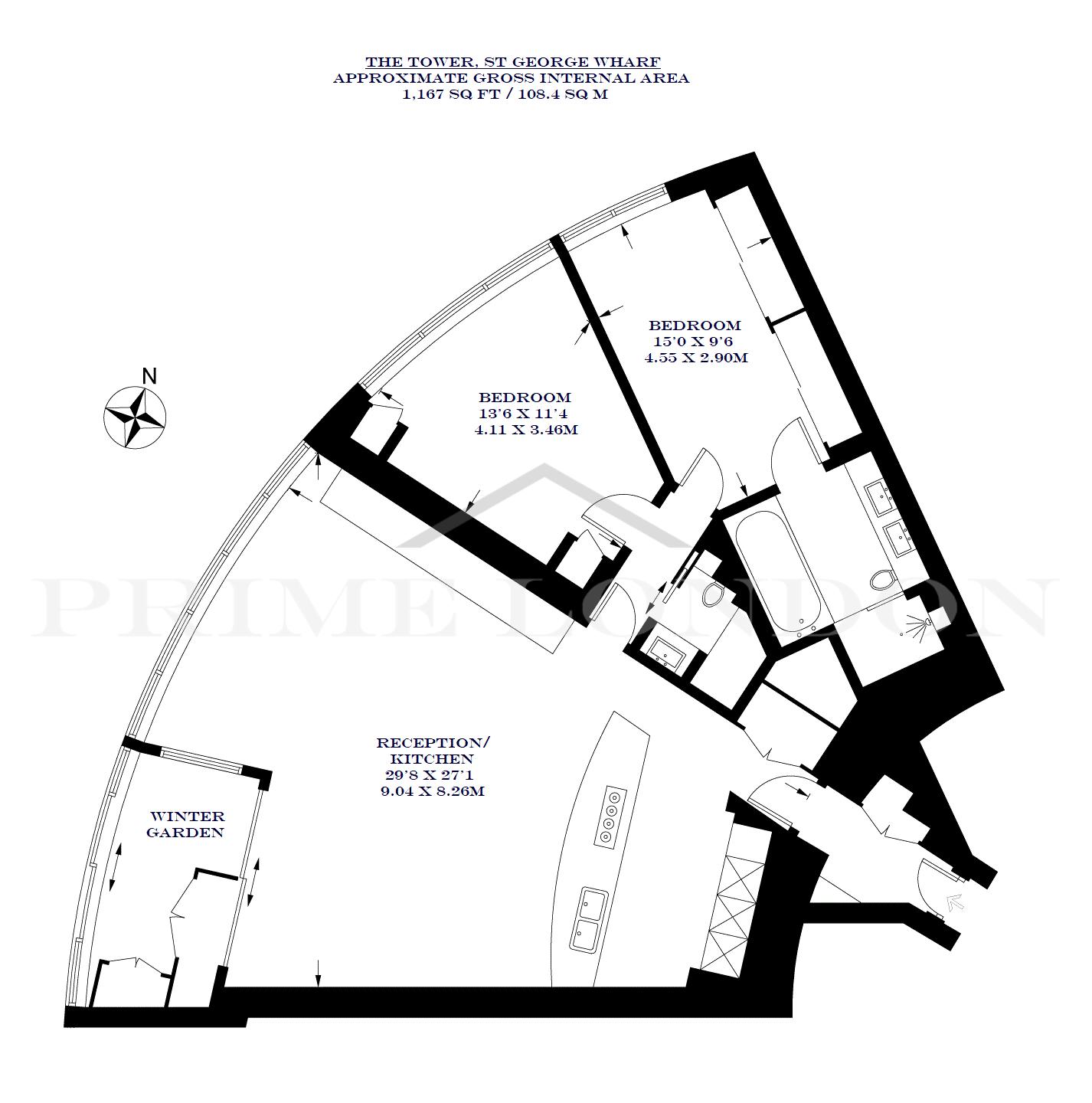 This 1,167 sq ft (108.4 sqm) apartment offers stunning views across London (including the River Thames, Battersea Power Station and Chelsea - not to mention the truly beautiful sunsets seen from this property), and features an excellent specification throughout including marble, glass and polished stone finishes. The apartment further benefits from its own sky garden balcony, fully comprehensive kitchen with Miele appliances, modern bathrooms and comfort cooling.