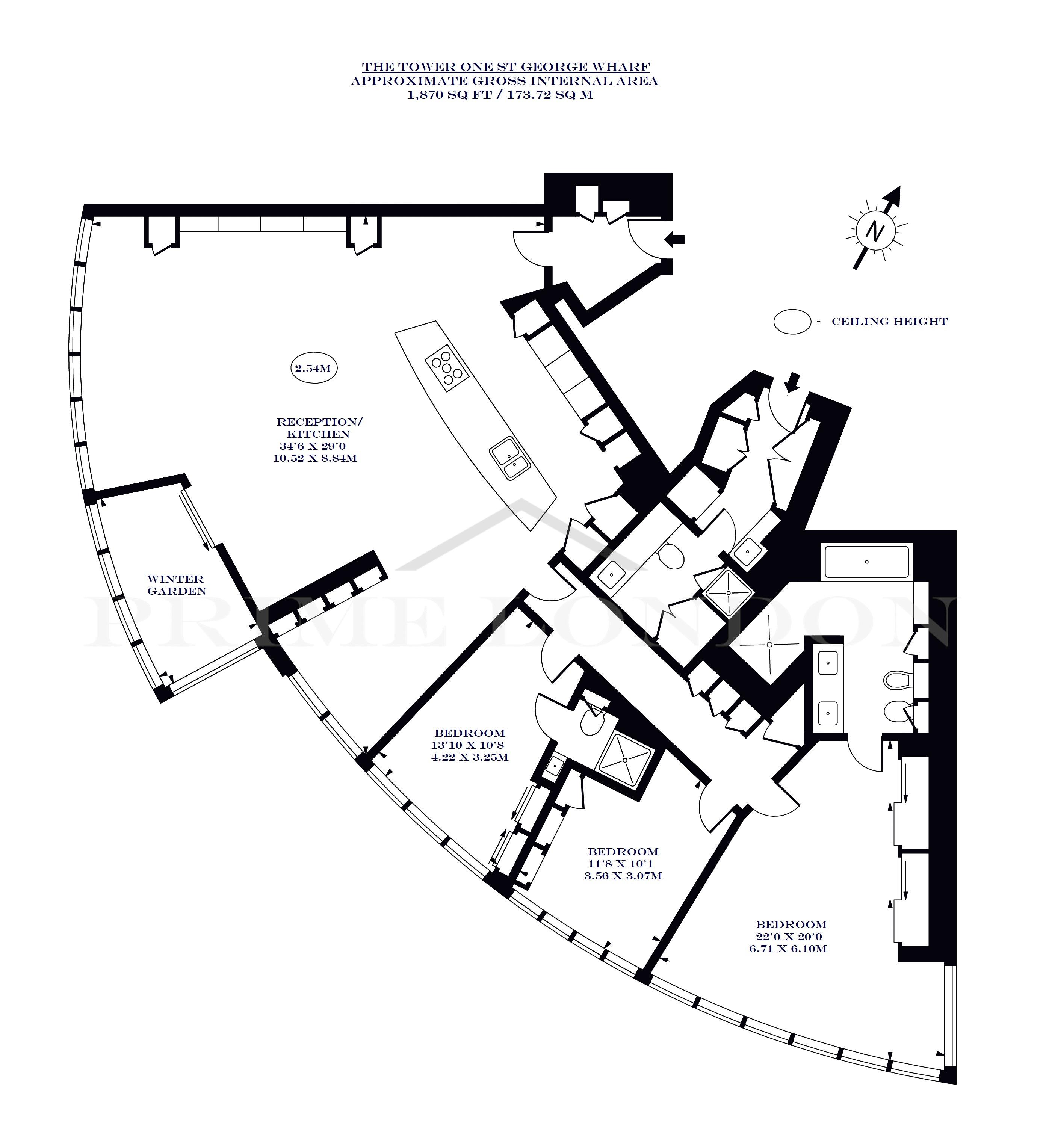 This 1,870 sq ft (173.72 sqm) apartment offers stunning views across London (including the River Thames, Battersea Power Station and Chelsea - not to mention the truly beautiful sunsets seen from this property), and features an excellent specification throughout including marble, glass and polished stone finishes. The apartment further benefits from its own sky garden balcony, fully comprehensive kitchen with Miele appliances, three modern bathrooms and comfort cooling.