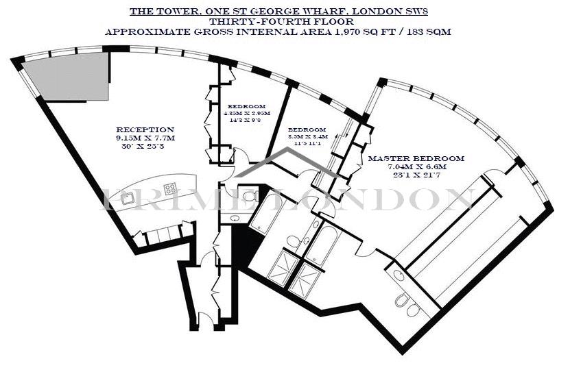 This thirty-fourth floor apartment offers stunning views across London and the new highrise hub of Nine Elm, and its features include marble, glass and walnut finishes throughout while the master suite benefits from an extremely large dressing area and en suite.