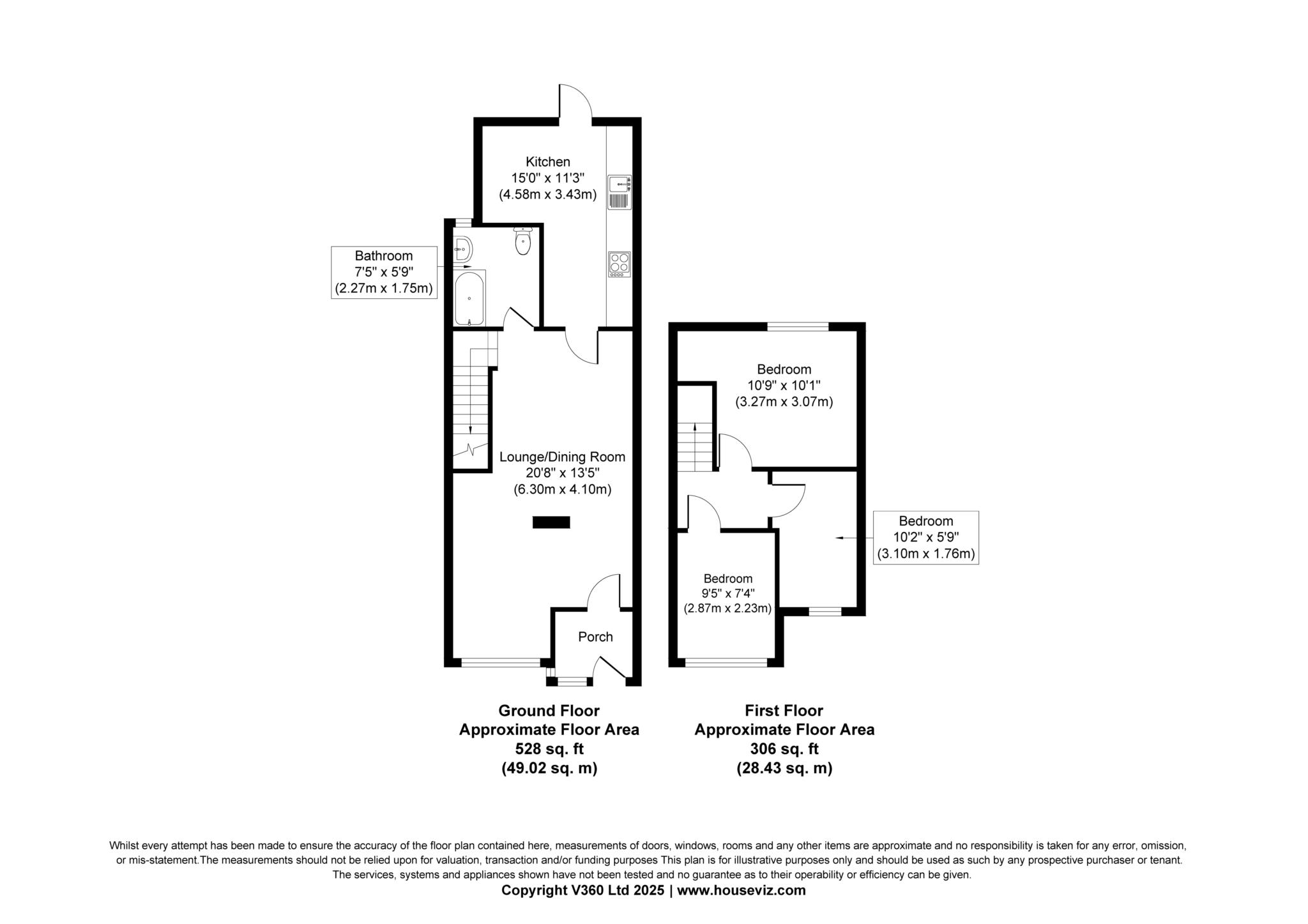 Bathroom: 7`5" x 5`9" (2.27m x 1.75m).