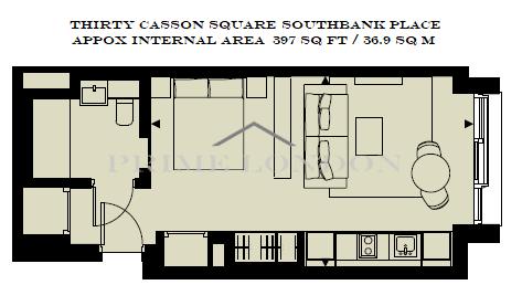 This superb luxury studio apartment in Thirty Casson Square, Southbank Place, is available for sale through Prime London.