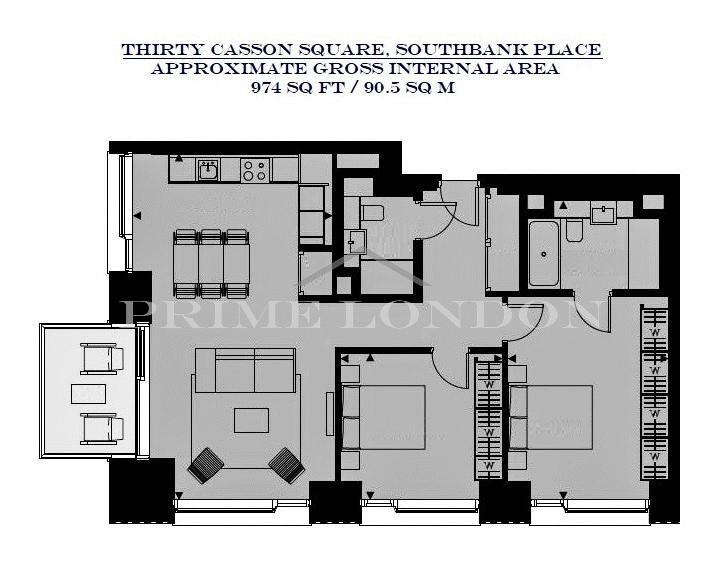 An ideal Central London two bedroom apartment with private balcony, finished to the highest specification, available to rent in Thirty Casson Square, Southbank Place through Prime London. Parking also available by separate negotiation.