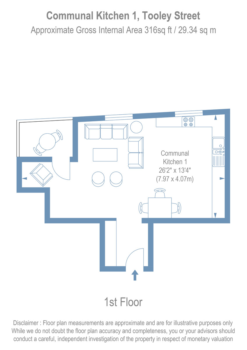 An exceptional, luxury studio apartment available to rent in a new secure development close to London Bridge Station with a small communal roof terrace. The studio is finished to the highest specification with a modern en-suite bathroom, ample built in storage with integrated washing dryer and fridge freezer and complete with impeccable furnishings. The building is complemented by two large communal kitchen and dining areas. This unique modern development is set right in the heart of vibrant Tooley Street SE1, with fantastic access within seconds to all shops and amenities. £250 per month will be added to the advertised price to cover the cost of all utilities including internet but not tv charges or council tax therefore the price will be £2000 including all bills with internet excluding Council Tax.