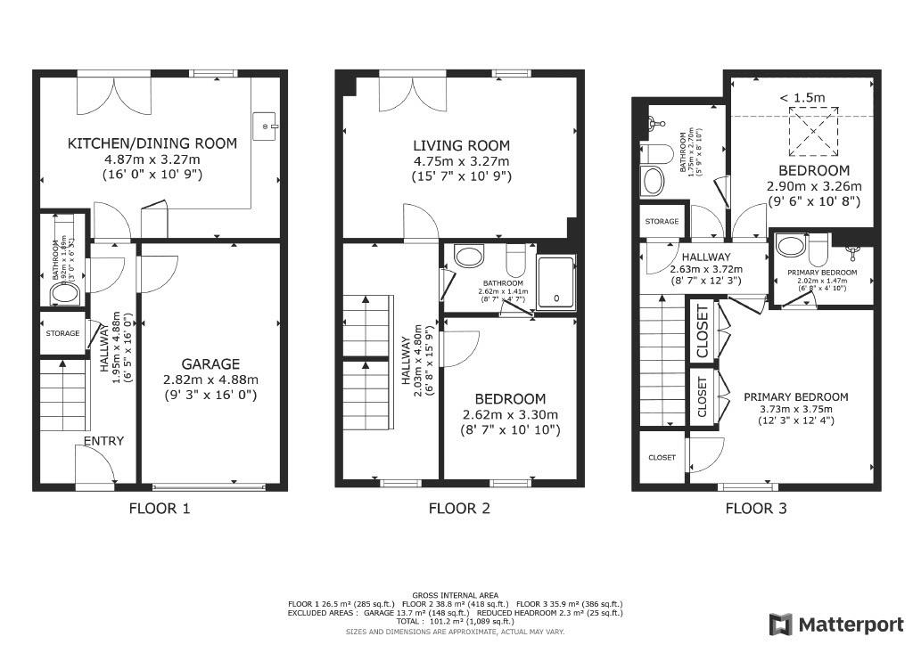 Garage - 4.88 x 2.82 (16'0" x 9'3" ) - Up and over door. Power and light connected.