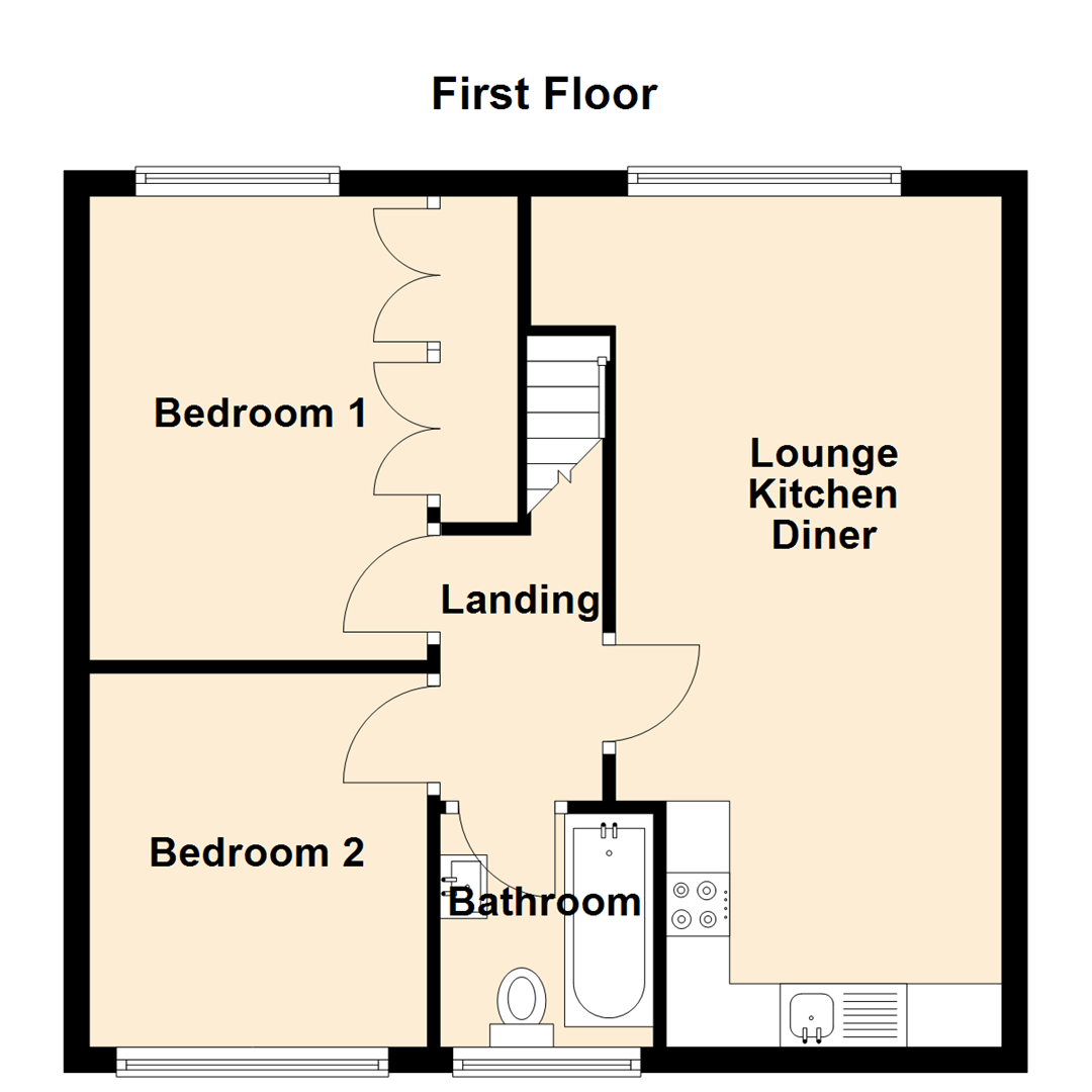 Upon entering the property, you are welcomed by a private entrance and stairs leading to the first-floor landing. The bright and airy open-plan lounge and kitchen is designed for modern living, complete with fitted wall and floor units along with an integrated oven and hob. There are two generously sized double bedrooms, and a contemporary three-piece bathroom suite with an overhead shower. Further benefits include gas central heating and double glazing throughout.