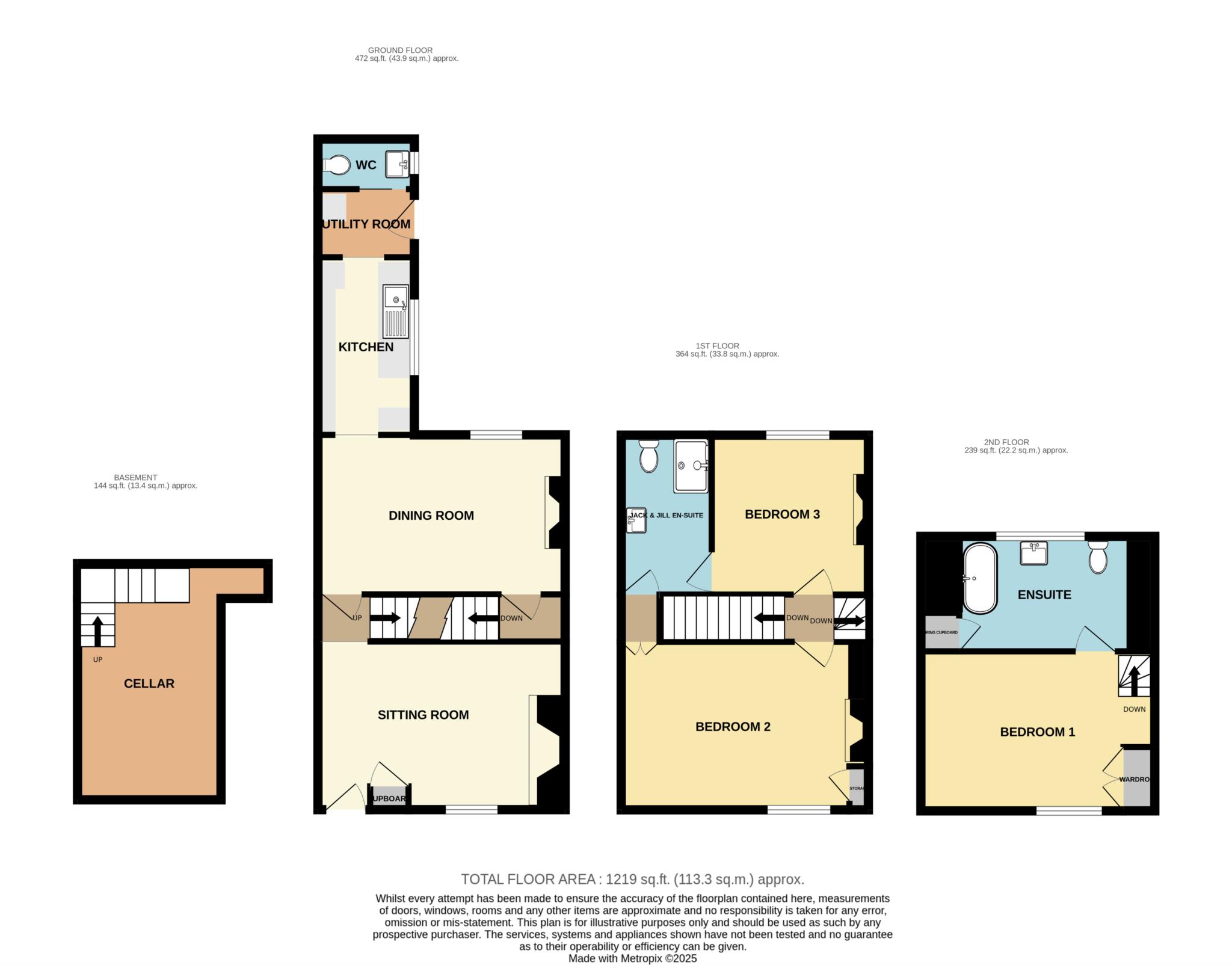 On the first floor, there are 2 double bedrooms sharing a well appointed Jack & Jill` shower room. The front bedroom has an original fitted wardrobe and a feature fireplace while the second bedroom offers a charming feature fireplace and views over the garden. The spacious main bedroom occupies the top floor with a generous en-suite bathroom complete with roll top bath. Externally there is a walled courtyard garden facing South West with a good degree of privacy.