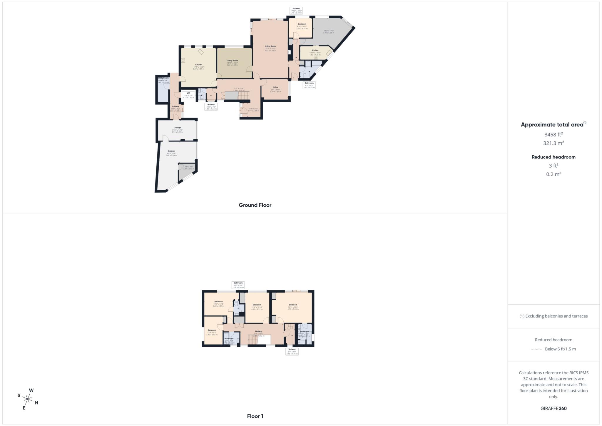 The property offers extensive parking for up to five vehicles in addition to two single garages. Subject to the necessary consents, the existing garaging presents excellent potential for conversion into further living accommodation, whether as an extension of the main house, a leisure suite, or additional guest space.