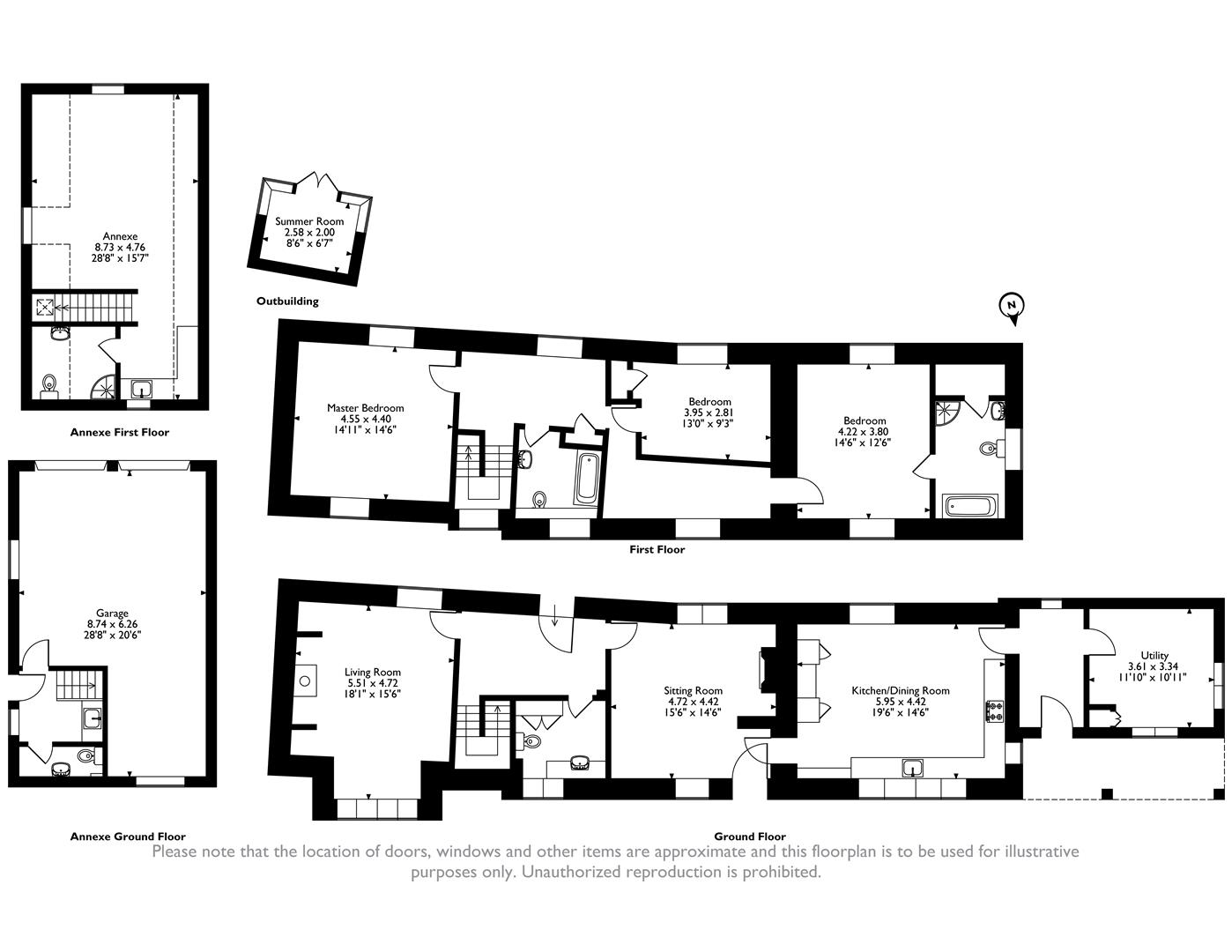 First Floor - Upstairs, there are three double bedrooms and two bathrooms, with character continuing throughout in the form of exposed beams and original floorboards. The two larger bedrooms benefit from dual-aspect windows with stunning views over the rear garden and countryside beyond. The third bedroom overlooks the front. The principal bedroom enjoys a spacious en-suite, while the remaining bedrooms share a well-appointed family bathroom with a shower bath, wash hand basin, and low-flush WC.