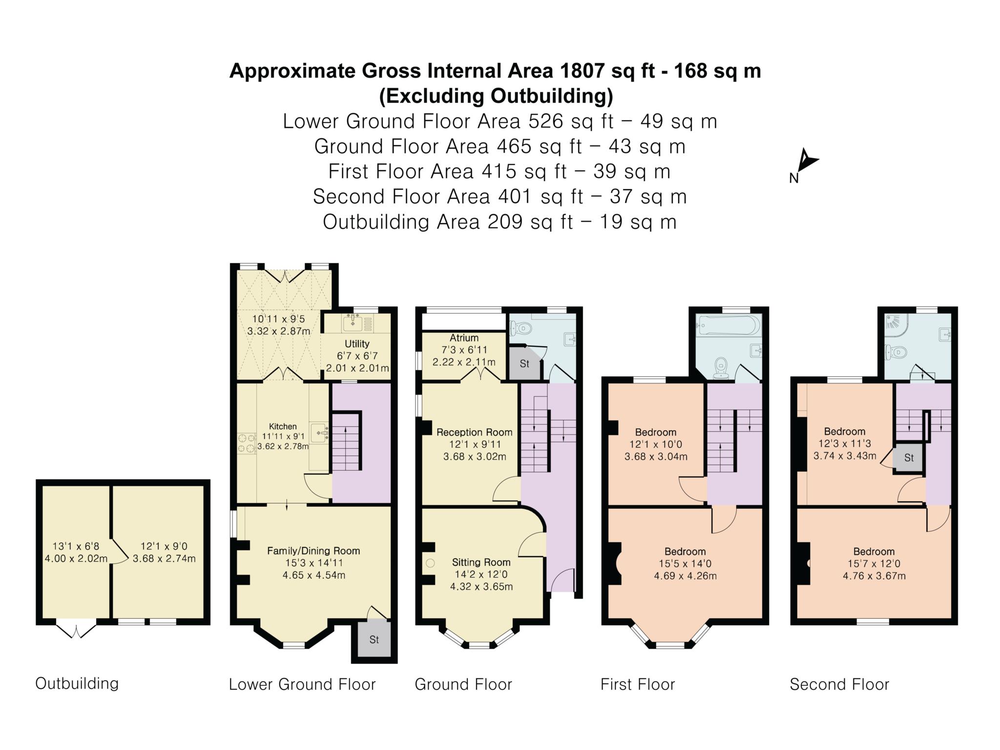 This charming Victorian end of terrace home affords interesting and spacious family accommodation. To the front is a small garden with rear side gate and light well with steps up to the upper ground floor. The front door leads into an entrance hall with a delightful sitting room to the front with large bay window. Adjacent to this is a second reception room with french doors into an interesting south facing atrium with views over the garden. On the landing down to the lower ground floor there is a cloakroom. There is a spacious family/dining room and utility room leading into the atrium and accessing the rear garden. On the first floor there is a master bedroom with bay window to the front and an adjacent double bedroom and bathroom. On the second floor there are two further double bedrooms and a second bathroom. Out side there is a south easterly facing garden with sidegate and useful outbuilding offering further opportunities. Walton Crescent is in a residents parking zone.