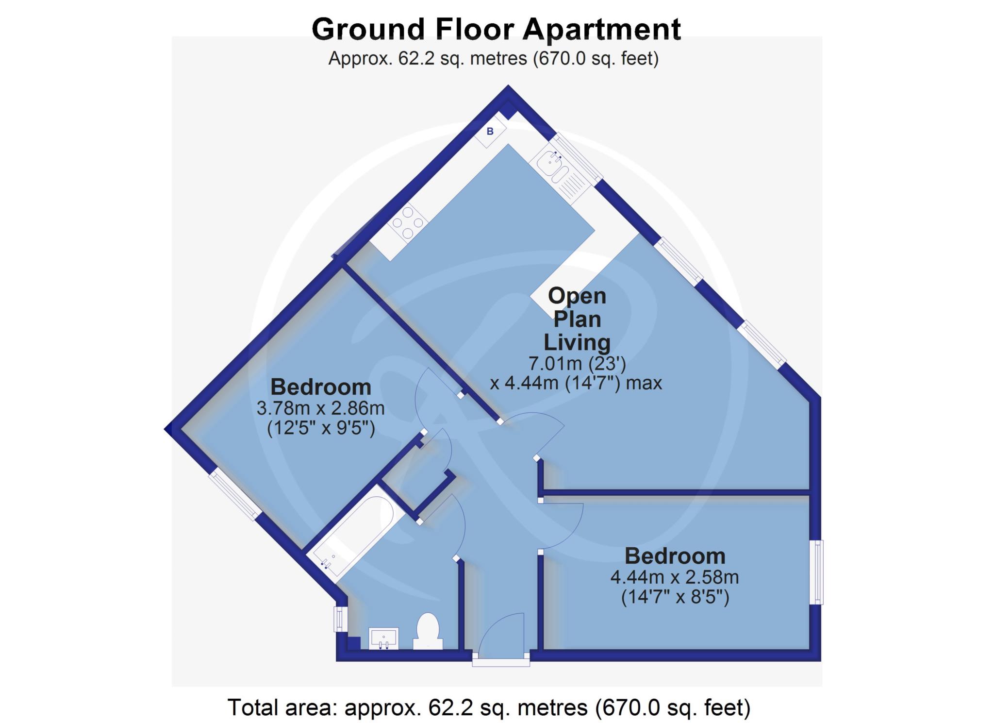 The accommodation itself flows naturally from a welcoming entrance hallway leading to a spacious open-plan living/dining area and a modern fitted kitchen. There are two well-proportioned bedrooms and a bathroom with contemporary fittings.