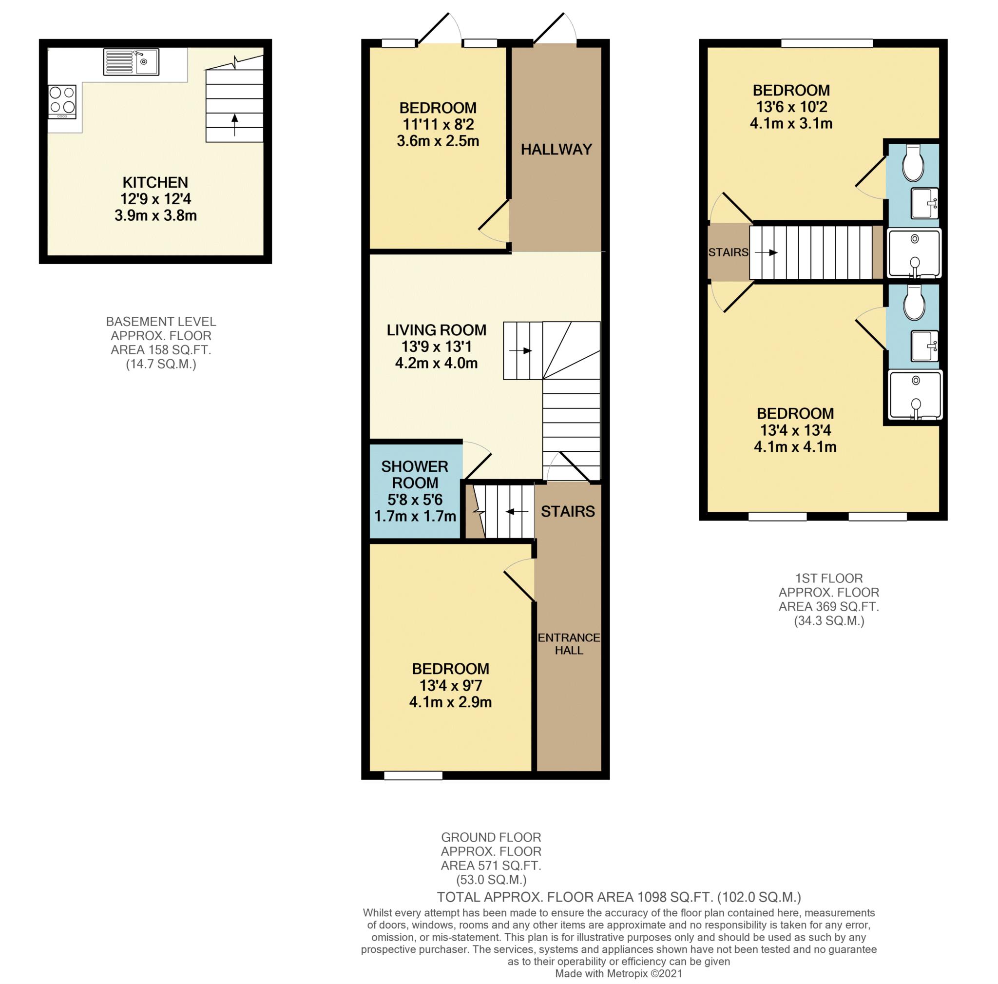 The property comprises of two ground floor bedrooms, shower room, living room, kitchen/diner on the basement level and two first floor bedrooms with en-suites.