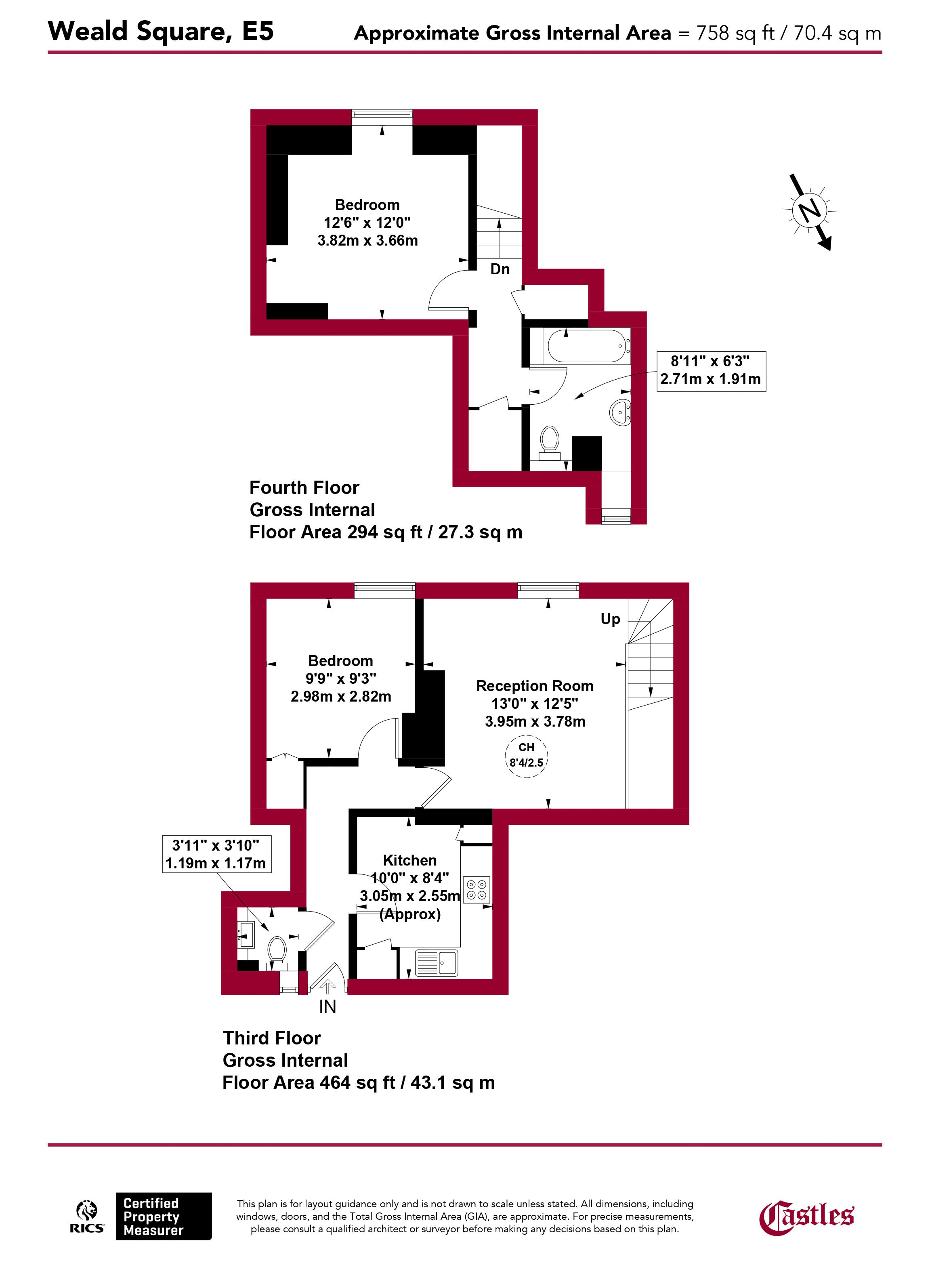 Castles Hackney are proud to present this beautifully refurbished two-bedroom split-level flat offering stylish and modern living across two floors. On the first level, you'll find a brand-new contemporary kitchen complete with fitted appliances including a fridge/freezer, washing machine, oven, cooker, and dishwasher, alongside a generously sized double bedroom, a bright and welcoming living area, and a convenient W/C. Upstairs features a spacious second double bedroom with views of some of London's iconic buildings, ample built-in storage, and a well-appointed family bathroom. With a well-maintained interior and a 100-year lease, this property is ideal for first-time buyers, small families seeking a move-in-ready home. The property also benefits from the recent installation of a modern hot water tank and central heating radiators. Being offered on a chain free basis. Located just a short walk from Clapton Overground Station, Weald Square benefits from excellent transport links into Central London and beyond. Upper Clapton Road offers a vibrant selection of cafes, restaurants, supermarkets, and local amenities, all right on your doorstep. For those who enjoy the outdoors, Springfield Park, Walthamstow Marshes, Millfields Park, and the scenic River Lea are all within walking distance perfect for weekend walks, cycling, or simply relaxing in nature. This property combines the best of urban living with access to green open spaces, making it a truly desirable location.
