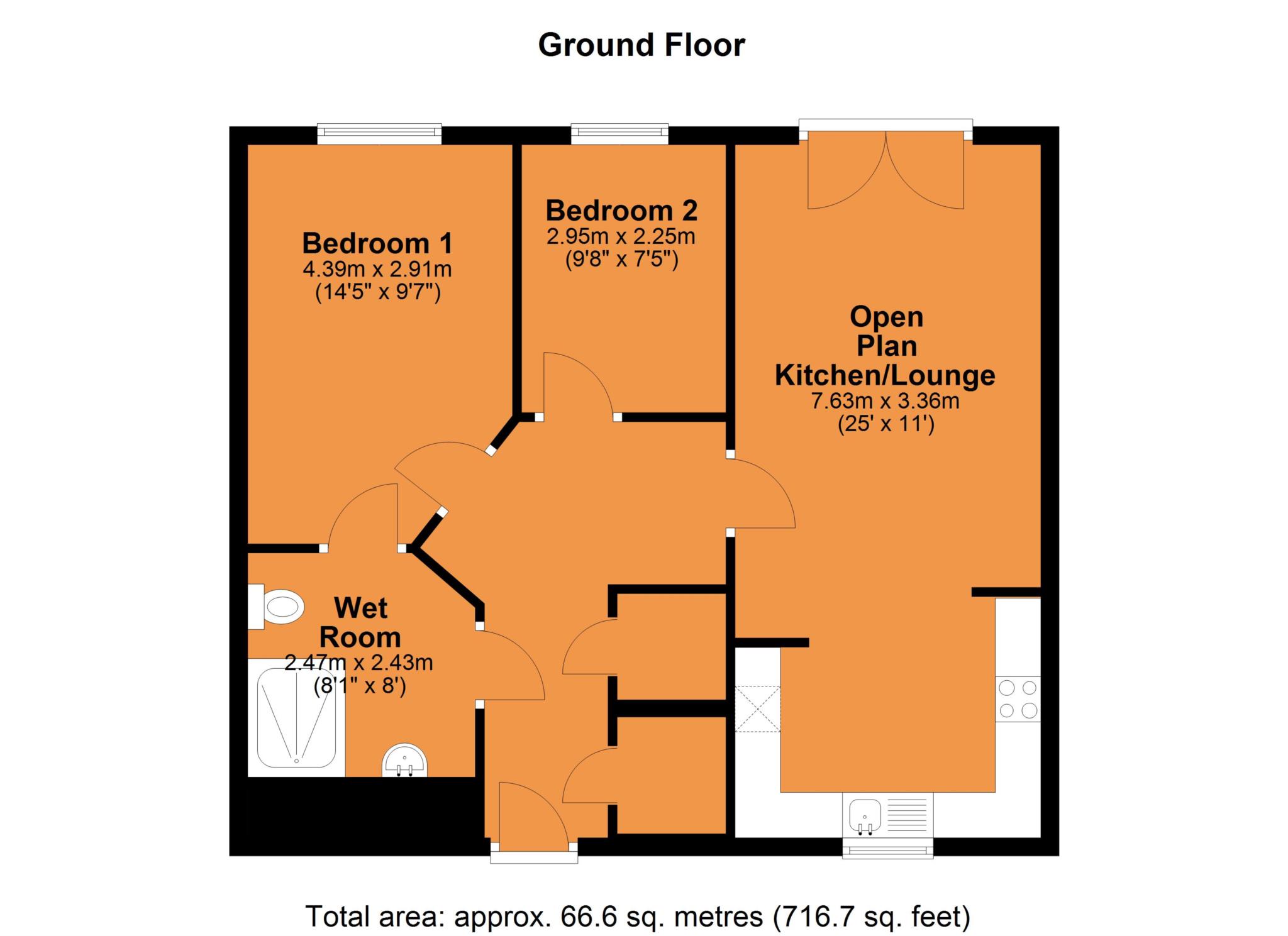 The first floor apartments accommodation comprises entrance hall with two large storage cupboards, open plan lounge/kitchen with Juliet balcony, two bedrooms and a Jack and Jill wet room that connects to the main bedroom and entrance hall.