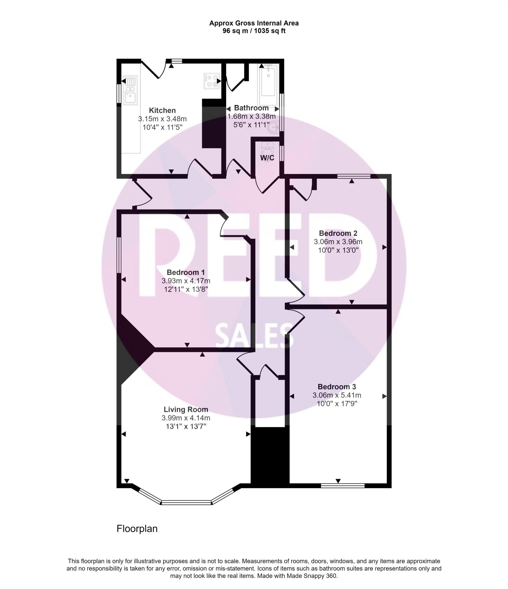 Measurements: 3.06m x 3.96m (10`0" x 13`0")