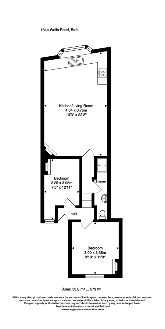 You enter the property via a secure locked gate on Wells Road, leading through to a side gate with access to the flat and a courtyard with shed, which tenants are welcome to make use of for keeping bikes or sitting outside in the summer. Ascending a staircase to the first floor, you enter to a hallway. There are two bedrooms at the back of the property set away from the street, each with a charming decorative fireplace. The shower room has a cubicle shower, WC, and basin. The living room is at the front of the property, and comprises of a large open plan reception area with decorative fireplace, space for dining, and brand new kitchen with a large bay window overlooking Wells Road.