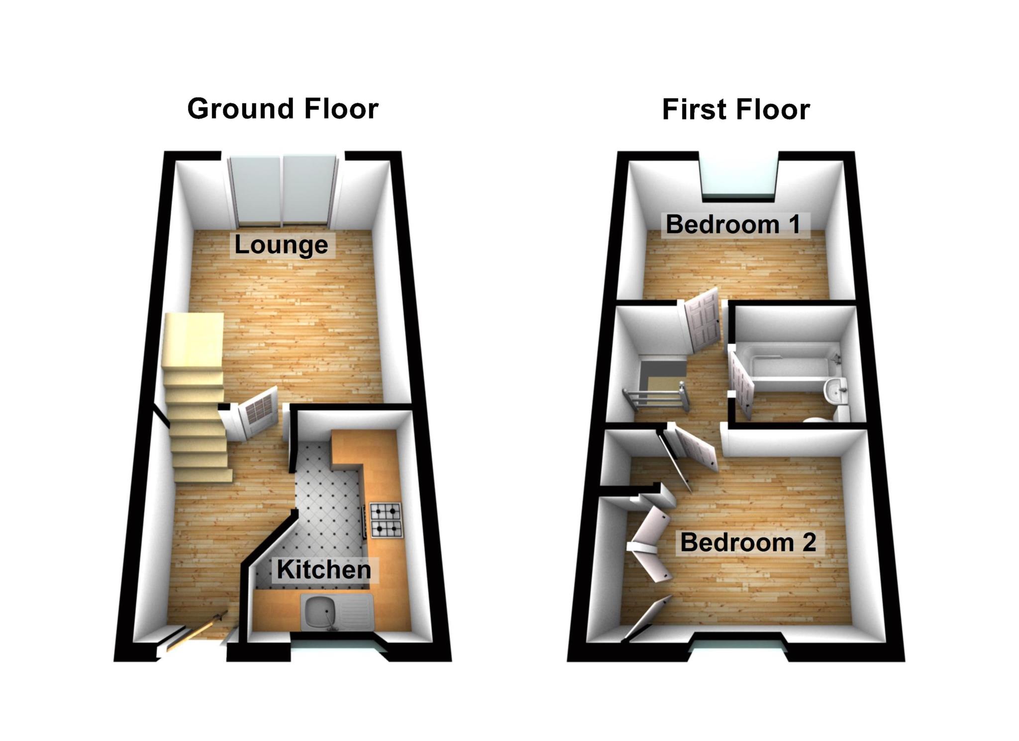 Two Double Bedrooms and the family Bathroom. Further benefits to note include Double Glazing, Gas Central Heating (untested) and En Bloc Garage