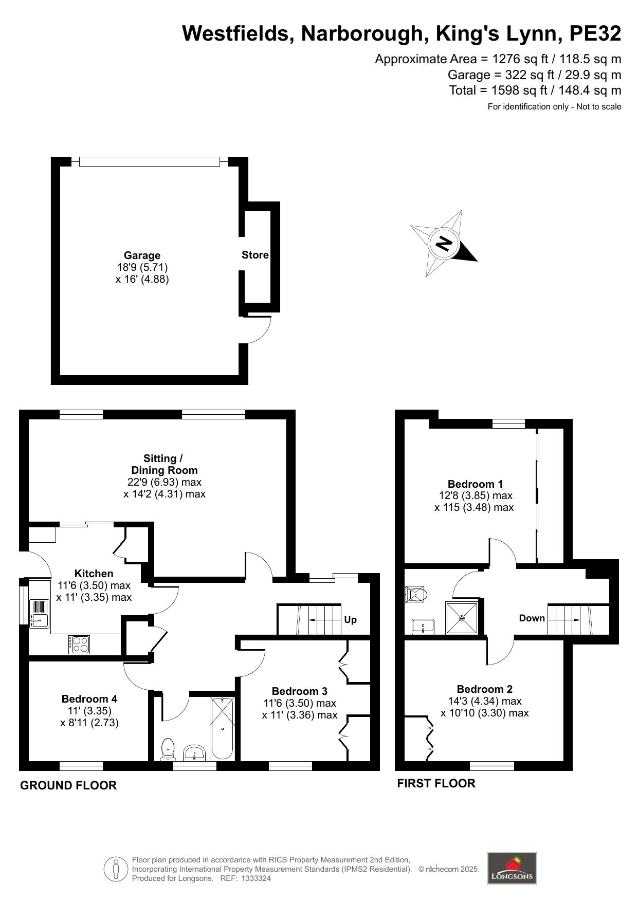 Situated in the popular Norfolk village of Narborough, Longsons are delighted to bring to the market this four bedroom detached bungalow. The property offers spacious and flexible accommodation including sitting/dining room, two bedrooms and bathroom to the ground floor, two bedrooms and shower room to the first floor, large single garage, parking, carport, gardens, summer house, oil central heating and UPVC double glazing.