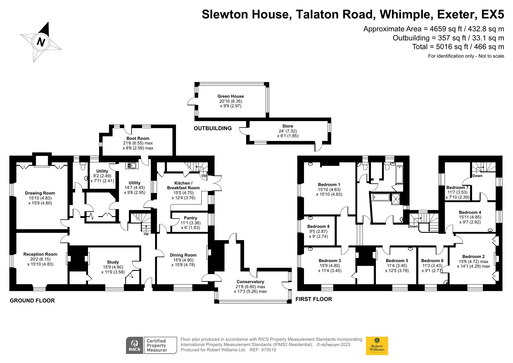 On the first floor are 8 bedrooms some of which could be turned into complementary en-suites although there are two full family bathrooms.