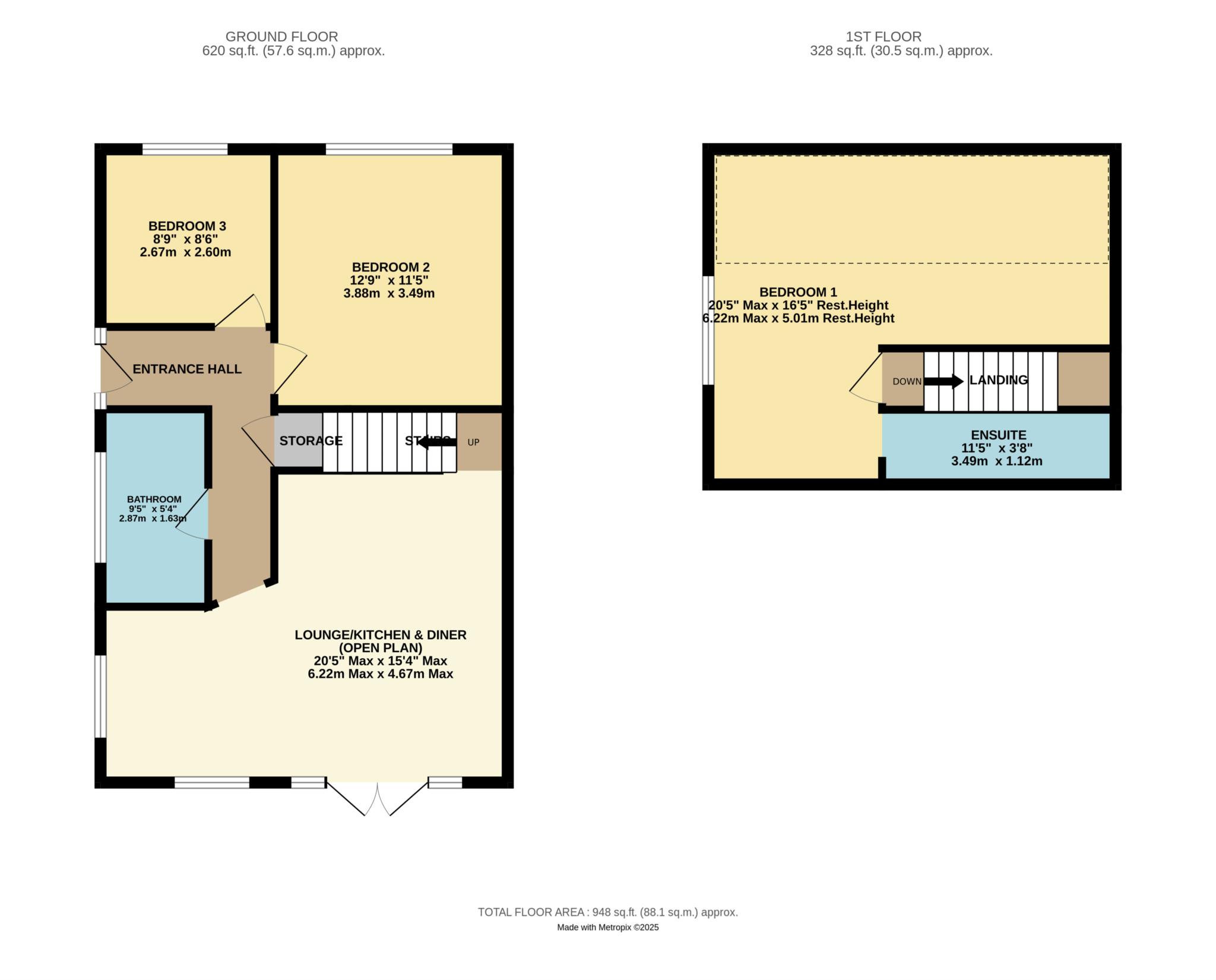 Bedroom One - 20'5" (6.22m) Max x 16'5" (5m) Into Eaves