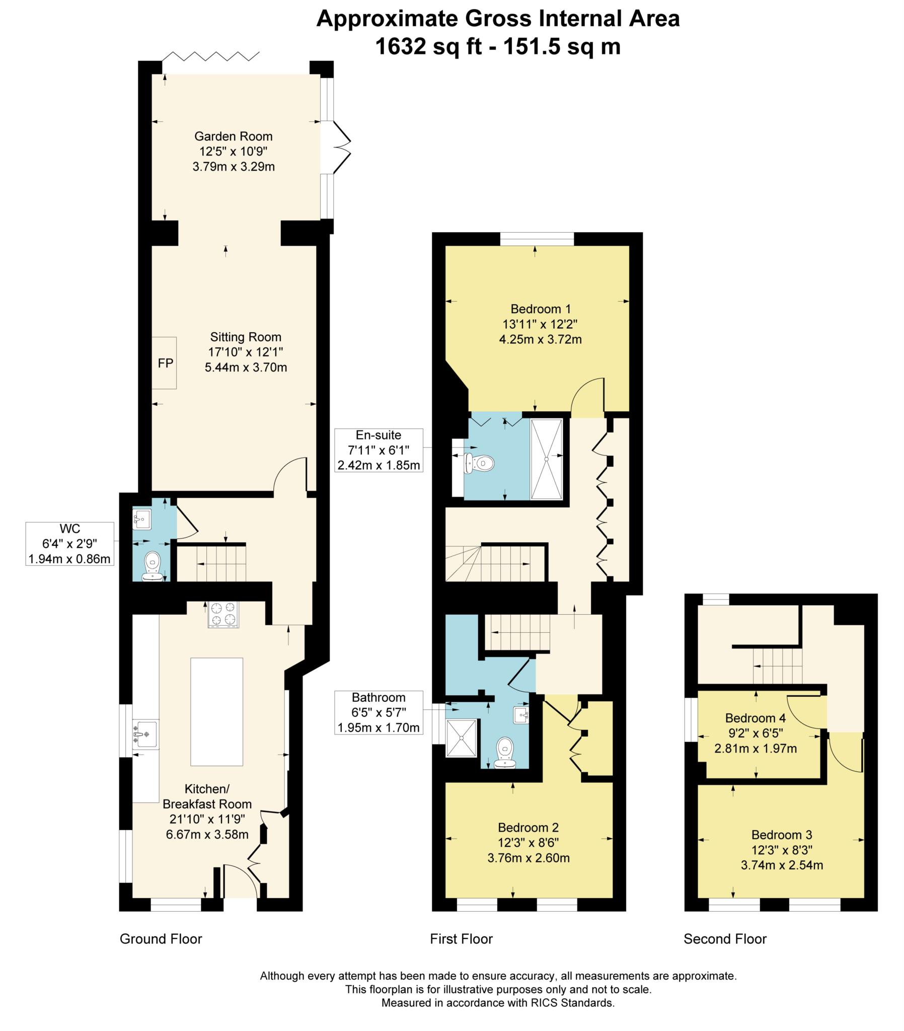 Summary of accommodation: Sitting room, garden room, kitchen/dining room, cloakroom, inner hall, 4 bedrooms, bedroom 4 currently used as a study, ensuite bathroom to bedroom 1, family shower room.