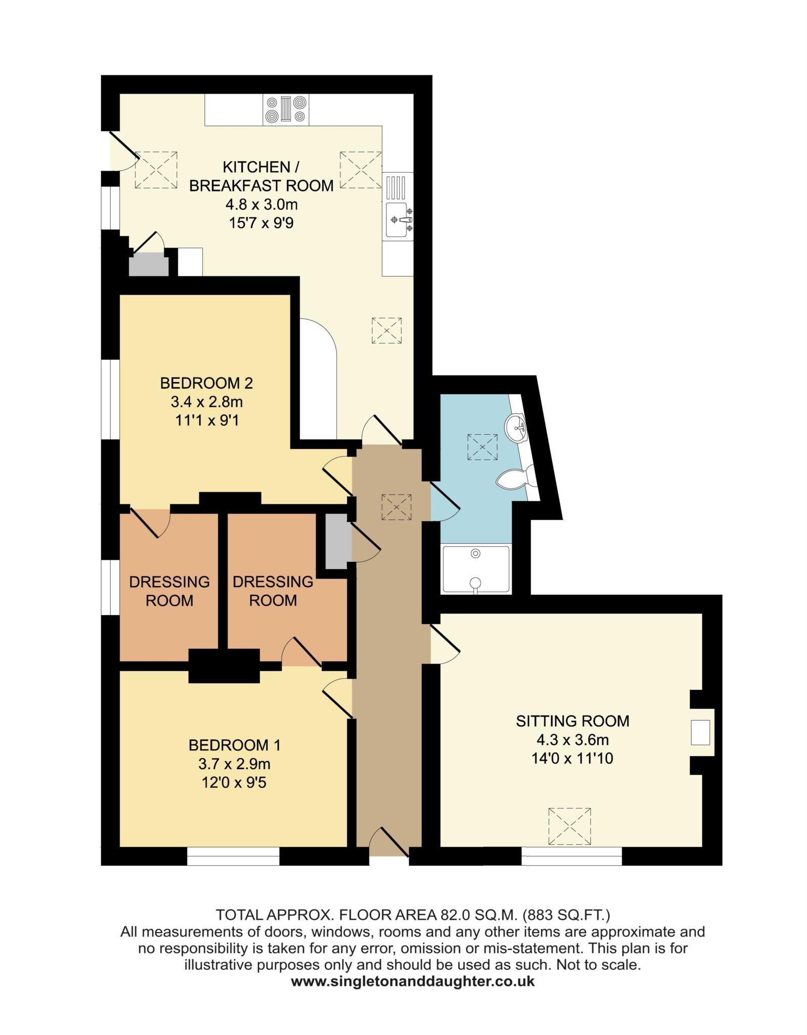 IMPORTANT NOTICE: Dudley Singleton & Daughter for themselves and for the vendors/landlords of this property, whose agents they are, give notice that: 1. The particulars are intended to give a fair and substantially correct overall description for the guidance of intending purchasers/tenants, and do not constitute part of an offer or contract. No responsibility is assumed for the accuracy of individual items. We relied upon our own brief inspection and information supplied to us by the vendors. (i) The description, including photographs of the property and its contents, are intended to be a guide only rather than a detailed and accurate report and inventory. (ii) Floor plans, measurements, areas and distances are intended to be approximately only. (iii) Prospective purchasers are strongly advised to check measurements. The position of bathroom fittings as shown on the plan is indicative only sizes, shapes and the exact locations may differ. Wall thicknesses, together with window and door sizes are approximate only and window and door openings are shown without frame details. (iv) Photographs are not necessarily comprehensive or current and no assumption should be made that any contents shown in them are included in the sale/let. 2. All descriptions, dimensions, references to condition and necessary permission for use and occupation and other details are given in good faith, and are believed to be correct, but any intending purchasers/tenants should not rely on them as statements or representations of fact but must satisfy themselves by inspection or otherwise as to the correctness of each of them. 3. No person in the employment of Dudley Singleton & Daughter has any authority to make or give any representation or warranty whatever in relation to this property or these particulars, nor to enter into any contract relating to the property on behalf of the vendor/landlord. 4. No responsibility can be accepted for any expenses incurred by intending tenants in inspecting properties which have been sold, let or withdrawn.