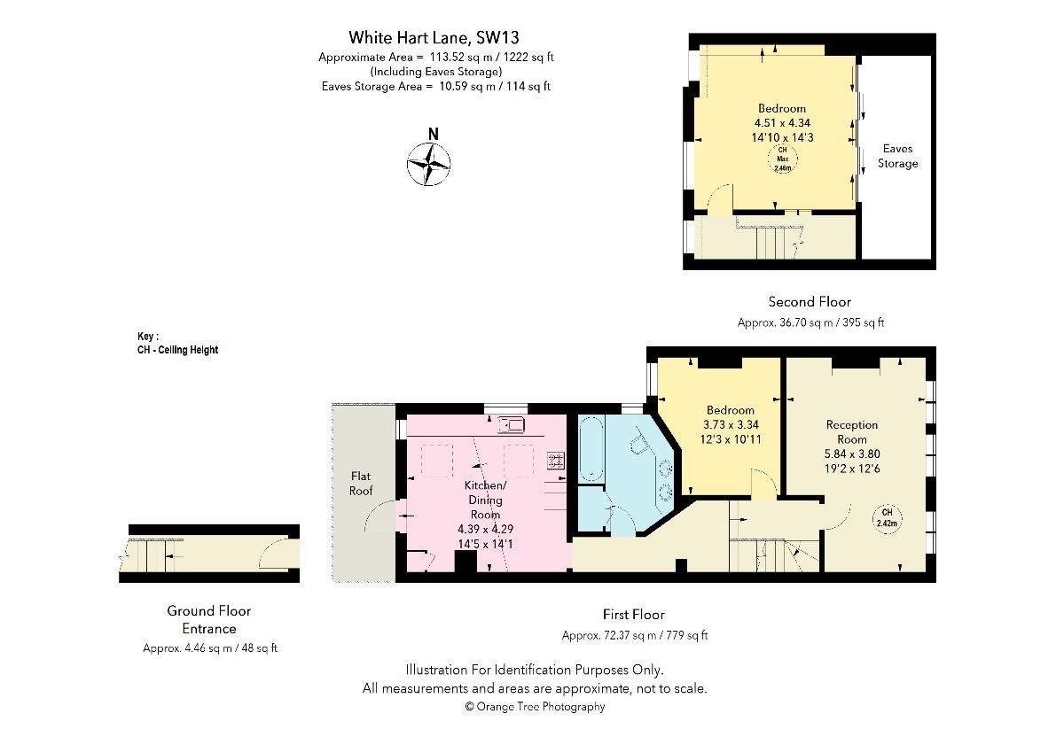 This apartment boasts over 1000 sq ft of living space and is ideally located only a five minute walk from Barnes Bridge. The first floor comprises of a large kitchen/diner that leads out onto a lovely west-facing terrace. A family bathroom fitted with double sinks and large bath, the principal bedroom and a living room with views over White Hart Lane, make up the rest of the first floor.