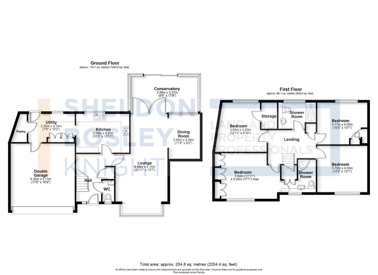 Upstairs, there are four well-proportioned bedrooms, all serviced by two modern shower rooms, including a particularly spacious principal bedroom. Ample built-in storage space is available off the third bedroom, and built-in storage in the principle and second bedrooms.