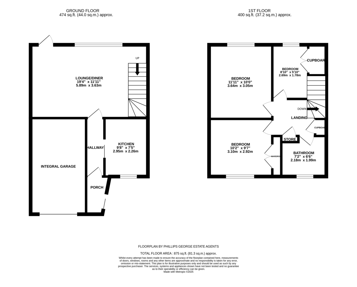 DISCLAIMER & IMPORTANT INFORMATION Phillips George Sales & Lettings for themselves and the vendors of this property whose agents they are, give notice that these particulars are not to be relied upon as a statement or representation of fact and do not constitute any part of an offer or a contract. Intending purchasers must satisfy themselves by inspection or otherwise as to the correctness of each and any statements contained in these particulars. The vendors do not make or give and neither do Phillips George Sales & Lettings (nor any person in their employment) have authority to make any representation or warranty whatsoever in relation to the property.