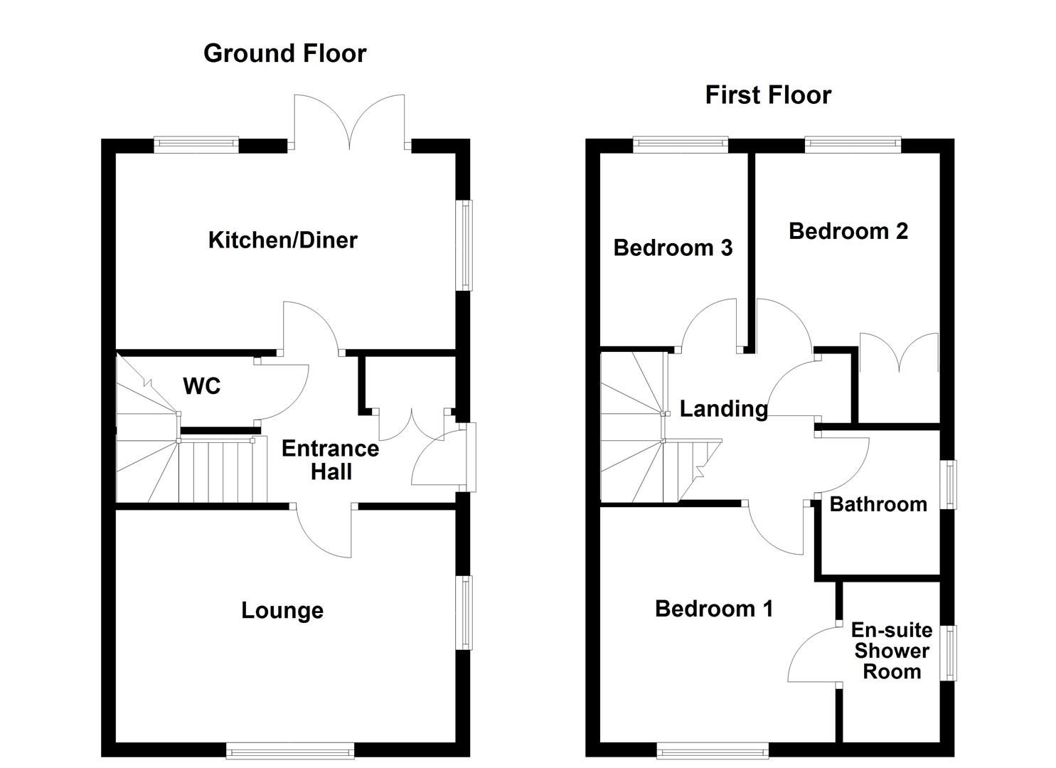 With UPVC double glazing and gas central heating, the property fully comprises of the entrance hall, downstairs w.c., lounge and kitchen/diner. Stairs to the first floor lead to three bedrooms (main bedroom with en suite shower room) and main house bathroom. Outside, a small flagged garden to the front and lawned garden to the side incorporating flagged patio area. There is a block paved driveway to the other side providing off street parking for two vehicles.