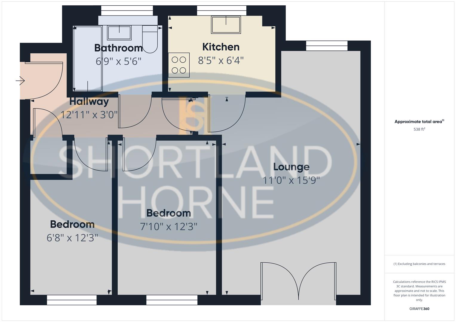 The accommodation comprises a spacious living area, two double bedrooms one of which features a built in wardrobe, a fully fitted kitchen with integrated appliances and a bathroom with a contemporary white suite.