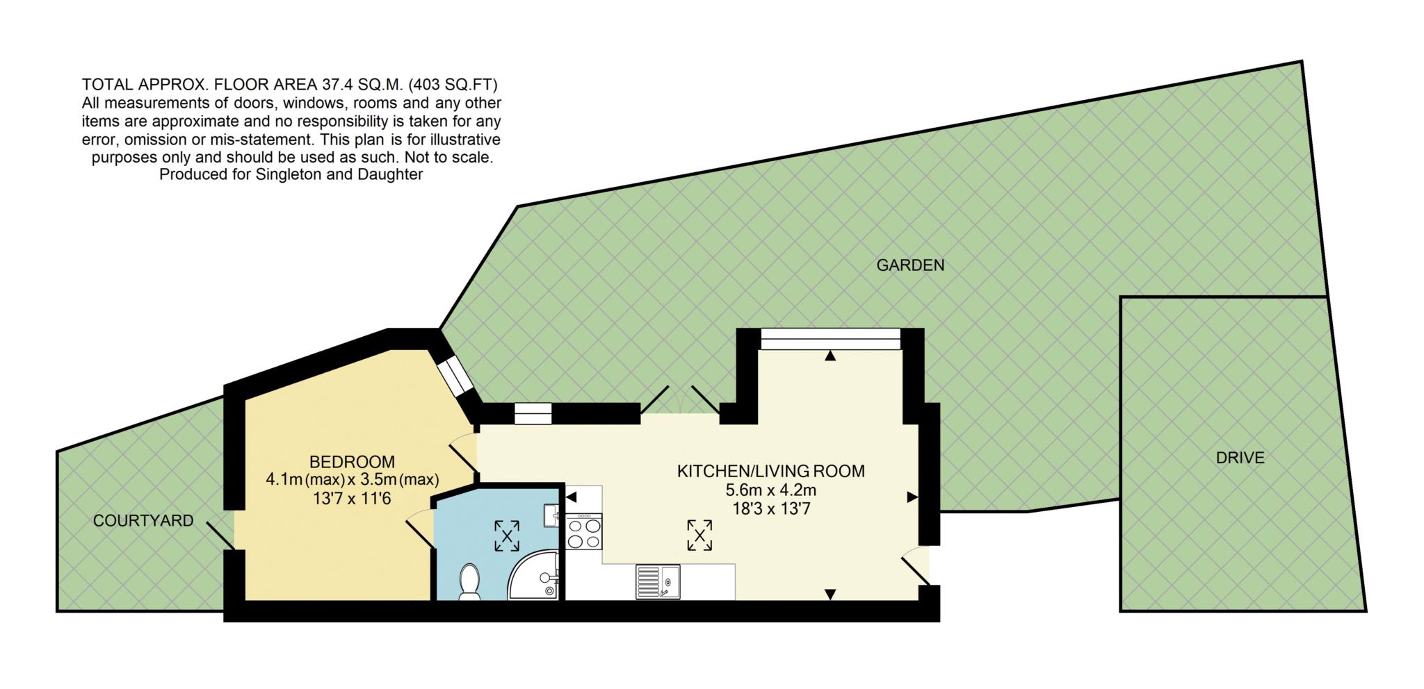 IMPORTANT NOTICE: Dudley Singleton & Daughter for themselves and for the vendors/landlords of this property, whose agents they are, give notice that: 1. The particulars are intended to give a fair and substantially correct overall description for the guidance of intending purchasers/tenants, and do not constitute part of an offer or contract. No responsibility is assumed for the accuracy of individual items. We relied upon our own brief inspection and information supplied to us by the vendors. (i) The description, including photographs of the property and its contents, are intended to be a guide only rather than a detailed and accurate report and inventory. (ii) Floor plans, measurements, areas and distances are intended to be approximately only. (iii) Prospective purchasers are strongly advised to check measurements. The position of bathroom fittings as shown on the plan is indicative only sizes, shapes and the exact locations may differ. Wall thicknesses, together with window and door sizes are approximate only and window and door openings are shown without frame details. (iv) Photographs are not necessarily comprehensive or current and no assumption should be made that any contents shown in them are included in the sale/let. 2. All descriptions, dimensions, references to condition and necessary permission for use and occupation and other details are given in good faith, and are believed to be correct, but any intending purchasers/tenants should not rely on them as statements or representations of fact but must satisfy themselves by inspection or otherwise as to the correctness of each of them. 3. No person in the employment of Dudley Singleton & Daughter has any authority to make or give any representation or warranty whatever in relation to this property or these particulars, nor to enter into any contract relating to the property on behalf of the vendor/landlord. 4. No responsibility can be accepted for any expenses incurred by intending tenants in inspecting properties which have been sold, let or withdrawn.