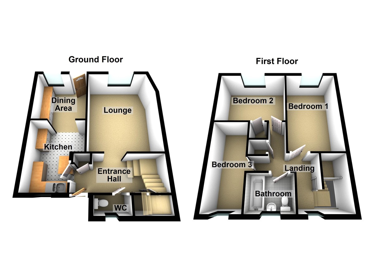 A part tiled bathroom with a modern three piece suite complete the first floor.
