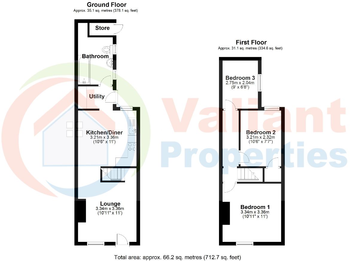 3.36m x 3.34m (11' x 10'11) Part glazed composite entrance door, uPVC sealed unit double glazed window to front, staircase to first floor, radiator, fitted carpet.